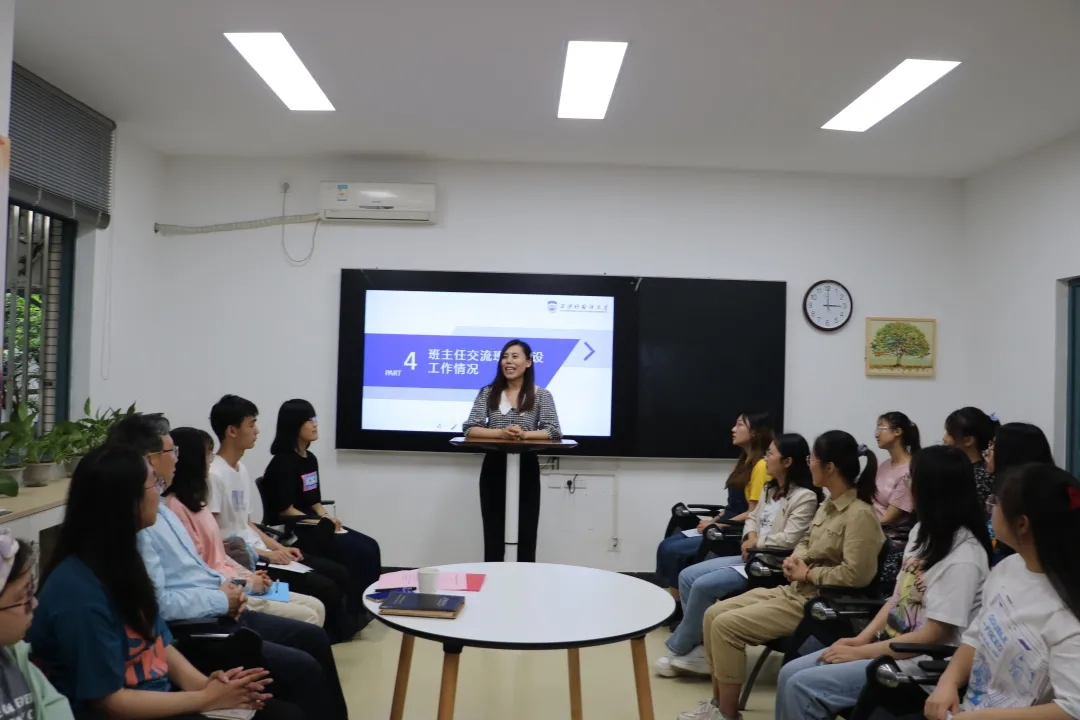 随后,班主任任凤芹从思想引领、学业指导、日常管理等方面就班级建设工作进行了总结汇报,也将2002班系列主题班会开展情况与研究生小先生制实施情况进行了分享。
