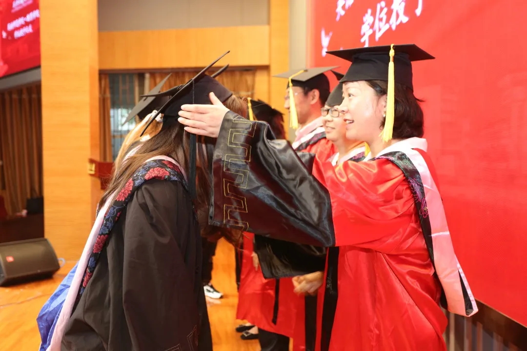 学位授予仪式最后,导师们为每一位毕业生拨穗正冠,并为毕业生佩戴学院定制的毕业戒指,颁发学位证书并合影留念。一张张笑脸青春洋溢,一幕幕画面定格美好时光,温暖而又庄重的仪式寄托着学院老师对每一位毕业生的深情祝福和殷切希望。感谢与感动交织,惜别与期冀同在,再听一次老师的叮嘱,再和同窗合一次影......大学生活随着夏日的阳光镌刻在最美的年纪里。