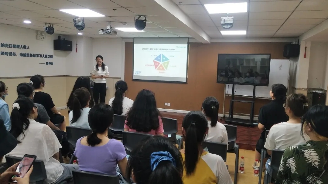 2021年7月5日上午,王红香老师带来“学科竞赛”为主题的讲座,分别从为什么要参加竞赛以及有哪些竞赛可以参加两方面进行了详细说明。结合学校用英语讲中国故事、英语演讲比赛、高校联盟学科英语模拟授课大赛、口语能力大赛、教案大赛、全国英语写作大赛全国大学生英语辩论赛等一一阐述。讲座期间王红香老师与学生进行了互动,采用全国英语演讲比赛的一道试题,让现场同学参与其中,现场欢声一片。