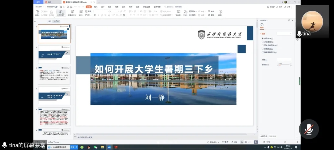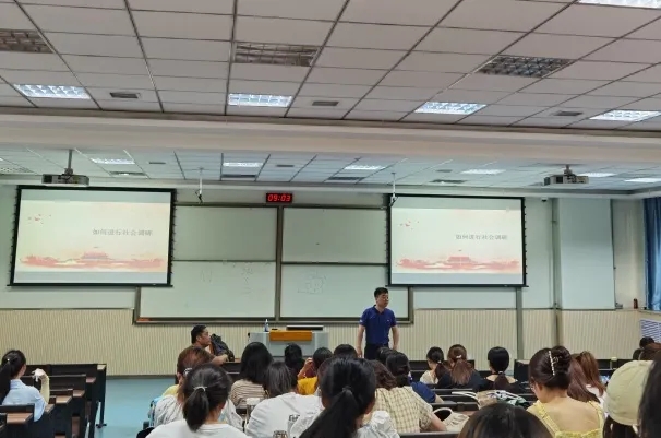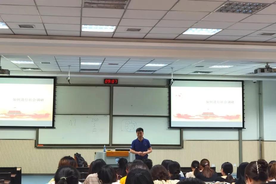 2021年7月8日上午,许涛老师以《如何进行社会实践》为题给同学们作了讲座。从是什么、为什么、怎么办三个方面介绍社会调查研究。许老师提到思想政治理论课学习对同学们价值观的塑造有着重要作用。思想政治理论课不是局限在学习马克思恩格斯主要理论,更重要的是聚焦于对我们个人价值观的塑造,让正确的价值观引领我们做出正确的人生选择。有助于同学们做出符合国家政策的选择,更好地实现自身价值和社会价值。最后提出实践是同学们接触社会、了解社会、服务社会,运用所学知识实践自我的最好途径。同时还需同学们在以后的学习中用知识武装自己,用书本充实自己,为以后服务社会打下更坚固的基础!