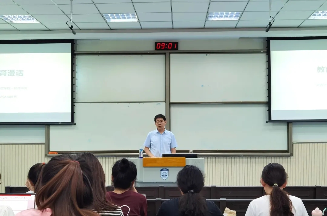 2021年7月9日早上9点,孙二军院长在SA102开展了题为“教育漫话”的讲座。孙老师提出要想成为一名老师,同学们首先树立正确的教育观,“教是为了更好的学”是教育的最高境界。同时,他强调,教师对语言的热情会极大的感染同学们。他呼吁同学们在大学生活中要做各种各样有意义的事情,提高自己的实践能力,提高专业素养能力。最后,孙老师寄语同学们殷切希望,希望同学们能在以后的学习生活中,通过各种实践活动真正的提高自己,不断完善自身。