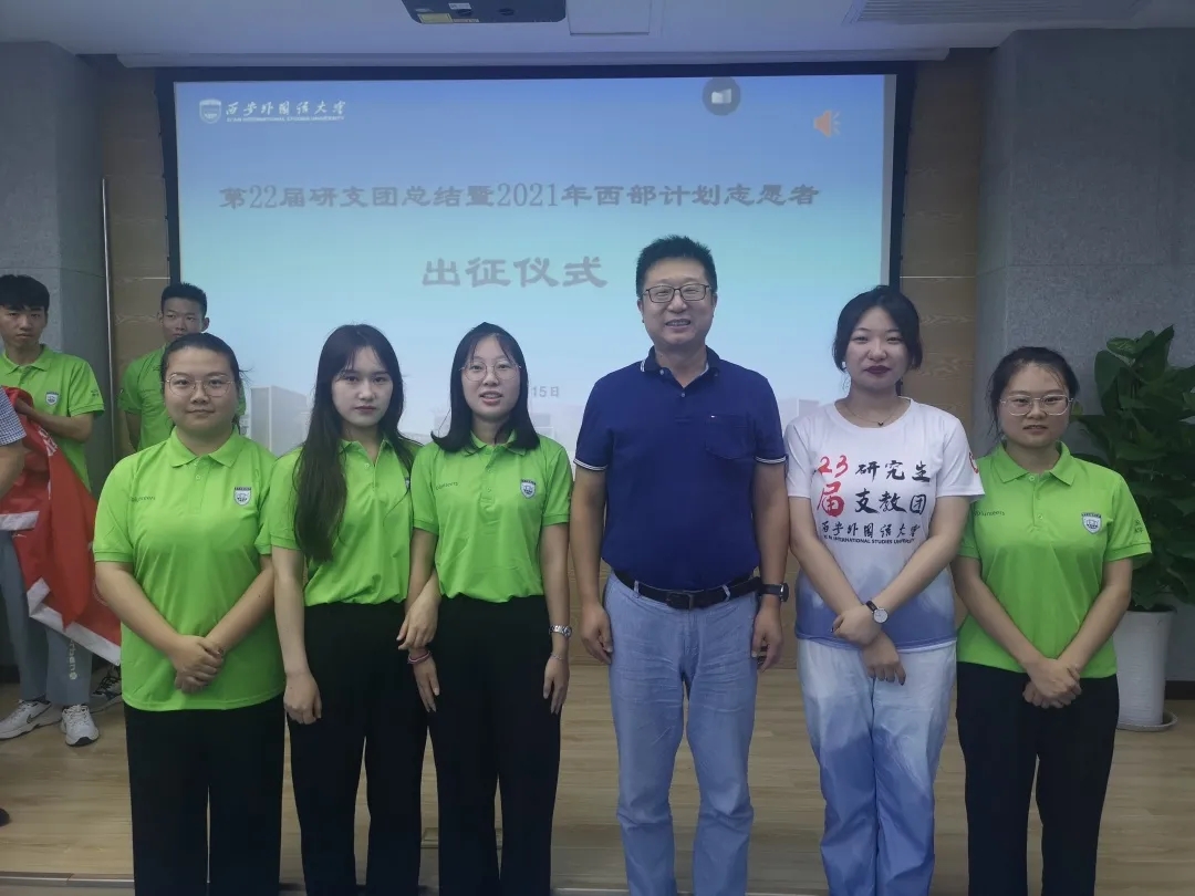 师生代表参加我校第22届研支团总结暨2021年西部计划志愿者出征仪式