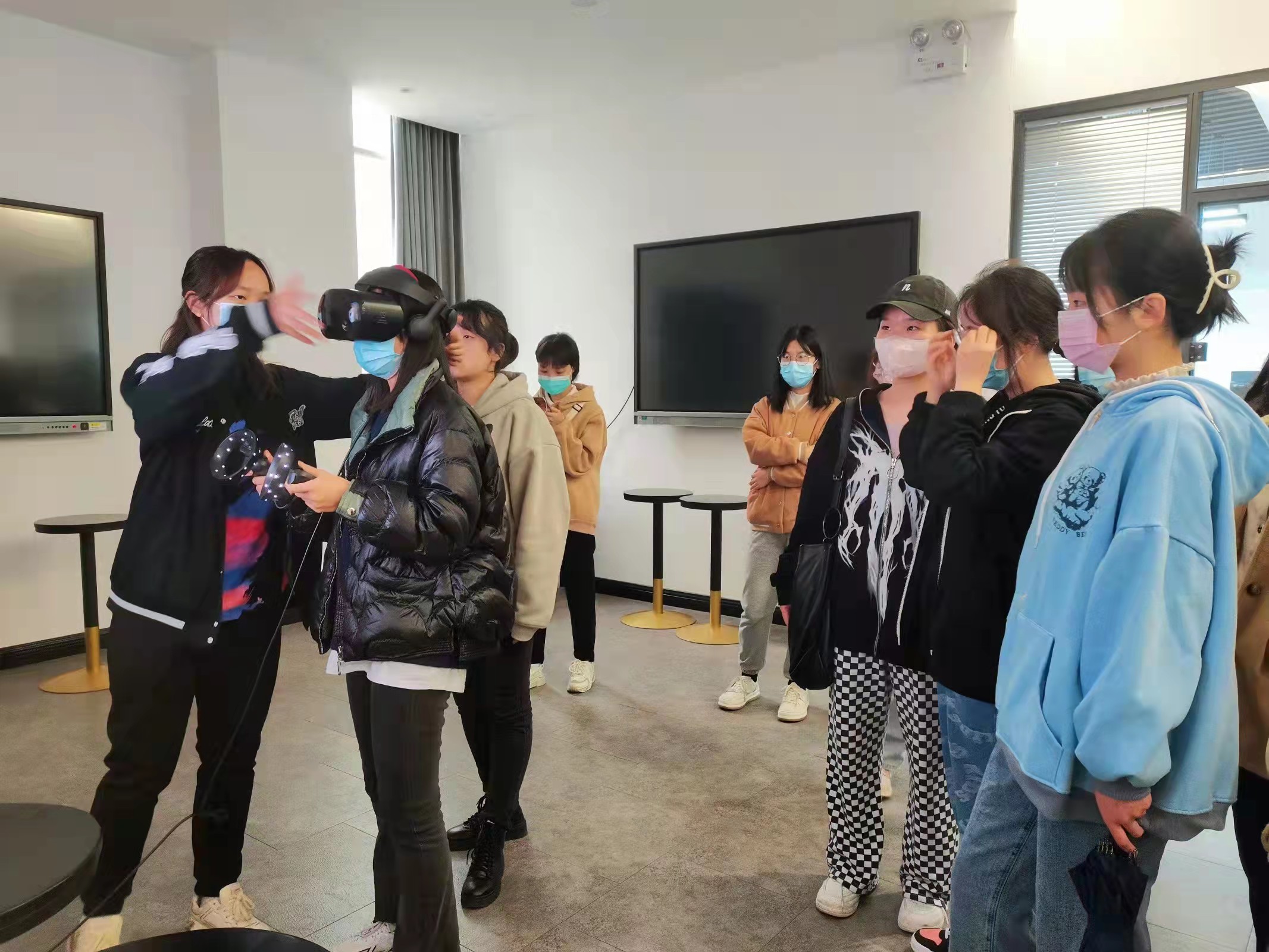 为拓宽学生视野,了解人工智能如何为我们的生活服务,11月1日下午,英语师范学院·九州娱乐官网 2019、2020级共50余名同学在2020级辅导员晁梦雨老师的带领下前往我校丝路青年众创空间进行参观。