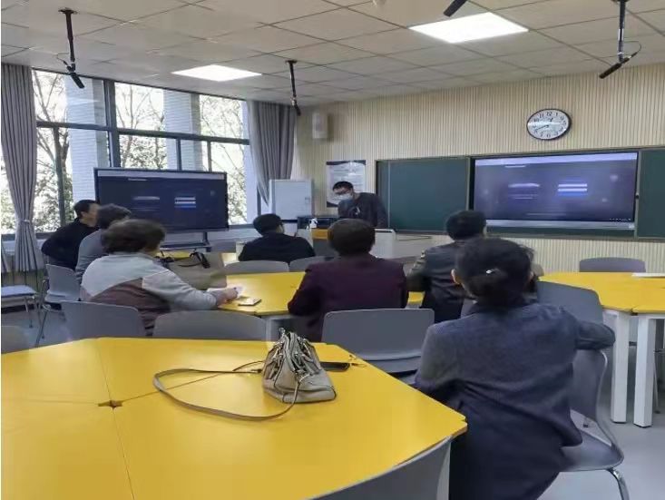 教师集体参观了JA203/205/207教室的整体情况,并提出了有关改进桌椅设计、摆放等建议。培训会中,培训教师介绍了微格教学实验室的教室布置、一体机操作流程等,让参会教师通过简单易学的流程了解教学实验室的使用。对老师们提出的一些使用问题,相关技术人员也积极解答。学院办公室和教务办也都对相关设备和教学管理进行了对接。