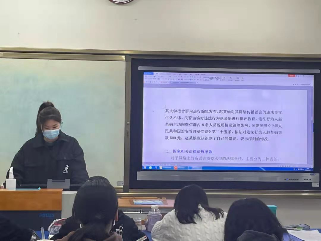 接下来,通过分析各类经典网络非法案例,强调了网络安全的重要性。并仔细说明《西安外国语大学学生违纪处分办法(修订)》中关于违反网络管理规定的内容,告诫同学们要规范网络用语,增强网络安全意识,提高辨别能力。