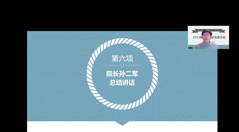 大会最后,孙二军总结讲话,他表示就业工作事关每一个家庭,学院历来重视就业工作,一直在努力做好就业工作,争取不让一个学生掉队。他希望家长们能够和学院一起切实关心孩子的就业,形成“家校携手,共促发展”的良好氛围,努力实现高质量就业。