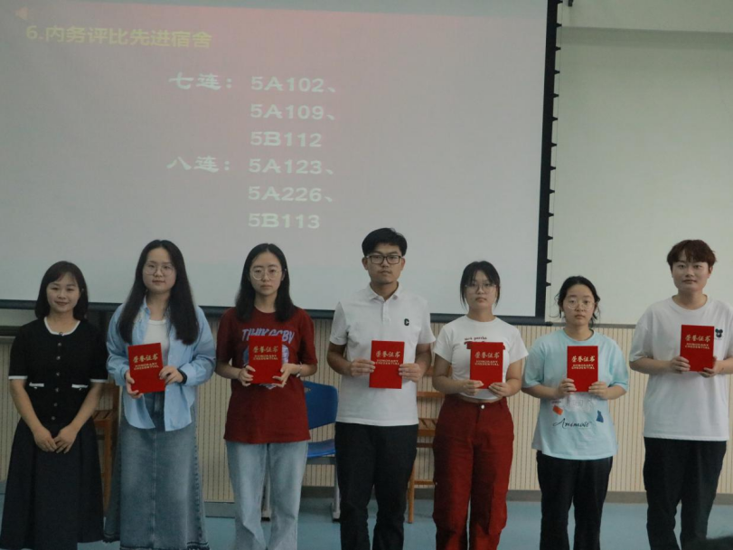学生所属的七连荣获队列会操优秀连队,七连和八连双双荣获最具人气连队,辅导员李瑞静荣获“优秀指导员”,两位连长祁隽泽和邓世成荣获“优秀教官”,2022级杨舒茸和贾思雨荣获“宣传报道先进个人”人,祁启等25名同学荣获“军训标兵”,5A102等6间宿舍荣获“内务评比先进宿舍”。