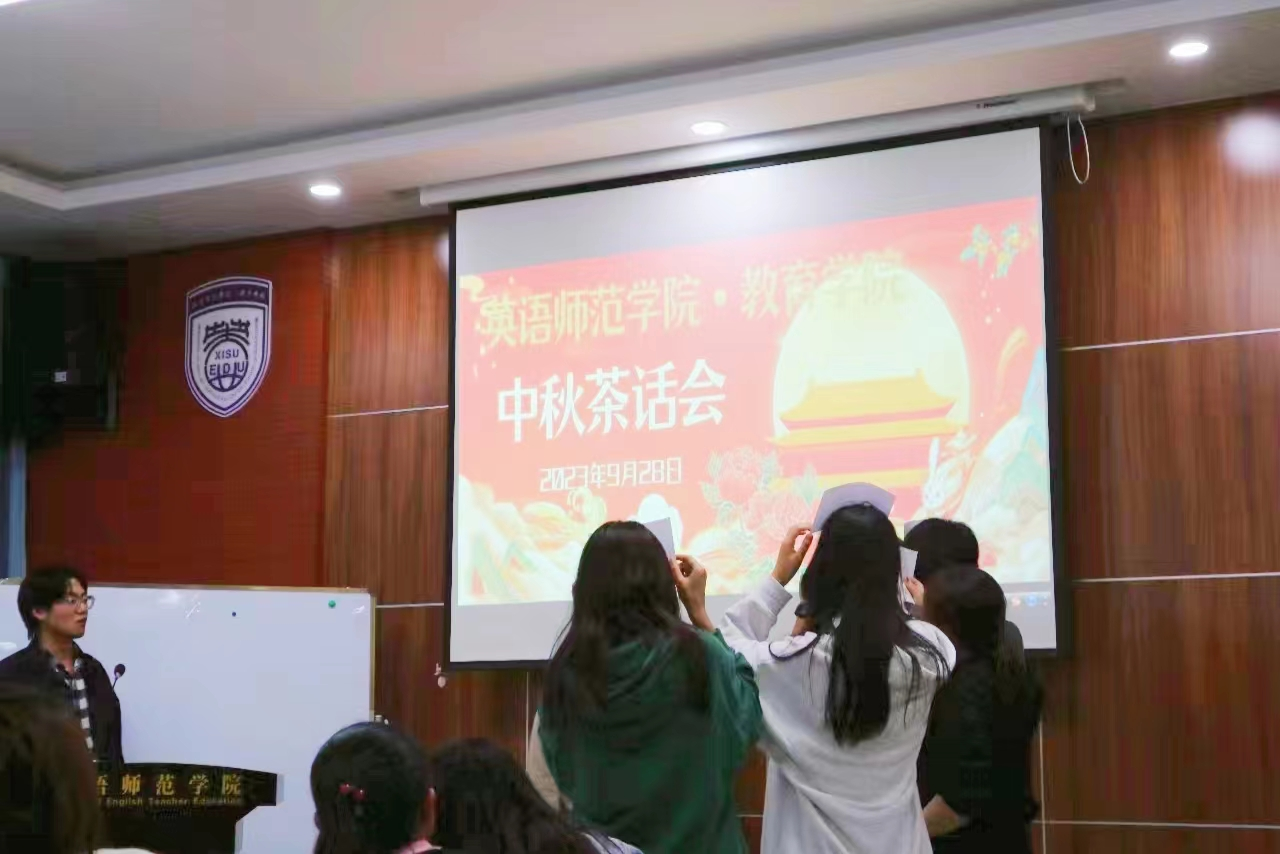 紧接着是激动人心的游戏环节,其中也有不少游戏富含韵味。知识竞答中,询问学生中秋意象以及月亮其他叫法,拓展同学们的知识面;惊心动魄的成语接龙增强文化自信与文化功韵;你画我猜中,各位参赛者绞尽脑汁,表演者才能各异,各展其能。活动丰富,现场气氛活跃,茶话会以圆满告终。