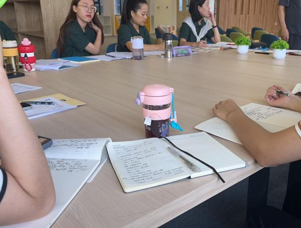 在英语组每周一次的研讨会中,我们会通过分析示范课例,单元整体教学课例视频观摩学习与交流,英语学科活动探讨以及各年级组问题与解惑等多样的活动流程总结上周工作并且进行集体反思与改进。在一次次的研讨会中,我们聆听老师们的经验,积极与老师们交流自己的教学感悟,慢慢地我们能够充分了解不同年级的学生学情特征与学习状况,走进课堂并且进行反思改进,能够因材施教,真正做到了知行合一。