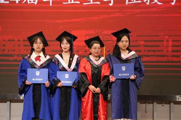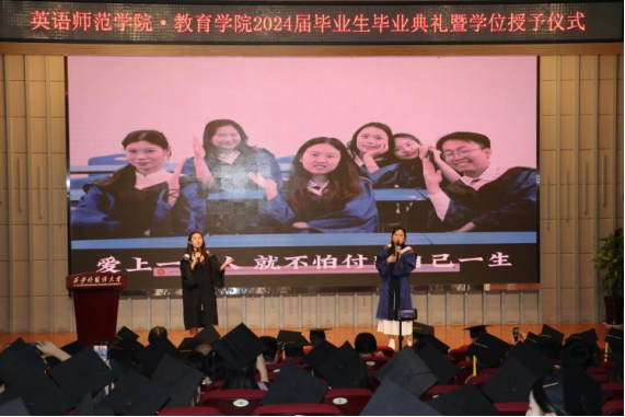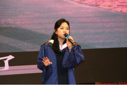 紧接着,本科生学生代表康佳豪发言。她表达了对学院的感激和对未来的憧憬,并回顾了自己在学校参加志愿活动和实践实习等方面的收获与成长。她表示会传承好教育使命,到西部去,到基层磨炼,展现出英师学生不凡的风采面貌。随后,研究生张佩琰代表全体2024届毕业生向学院献礼。她分享了自己求学路上的感悟,并向学弟学妹们寄予美好的期望,希望学弟学妹们发扬学院传统砥砺学习;同时祝福学院桃李满天下,培养出更多杰出优秀的人才。