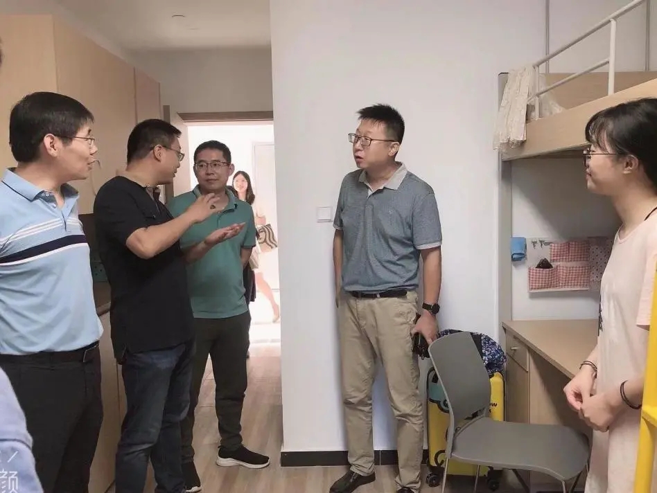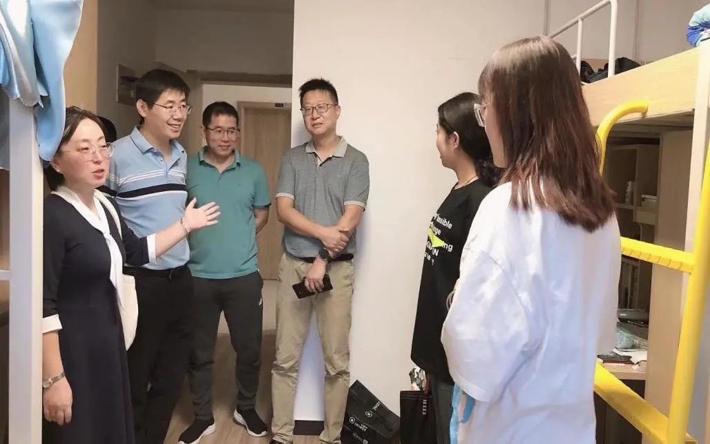 党委书记姚玮、院长孙二军、党委副书记刘一静、副院长冯东、副院长王嘉铭及研究生辅导员一道走访了新生宿舍,为新生送去温暖关怀。