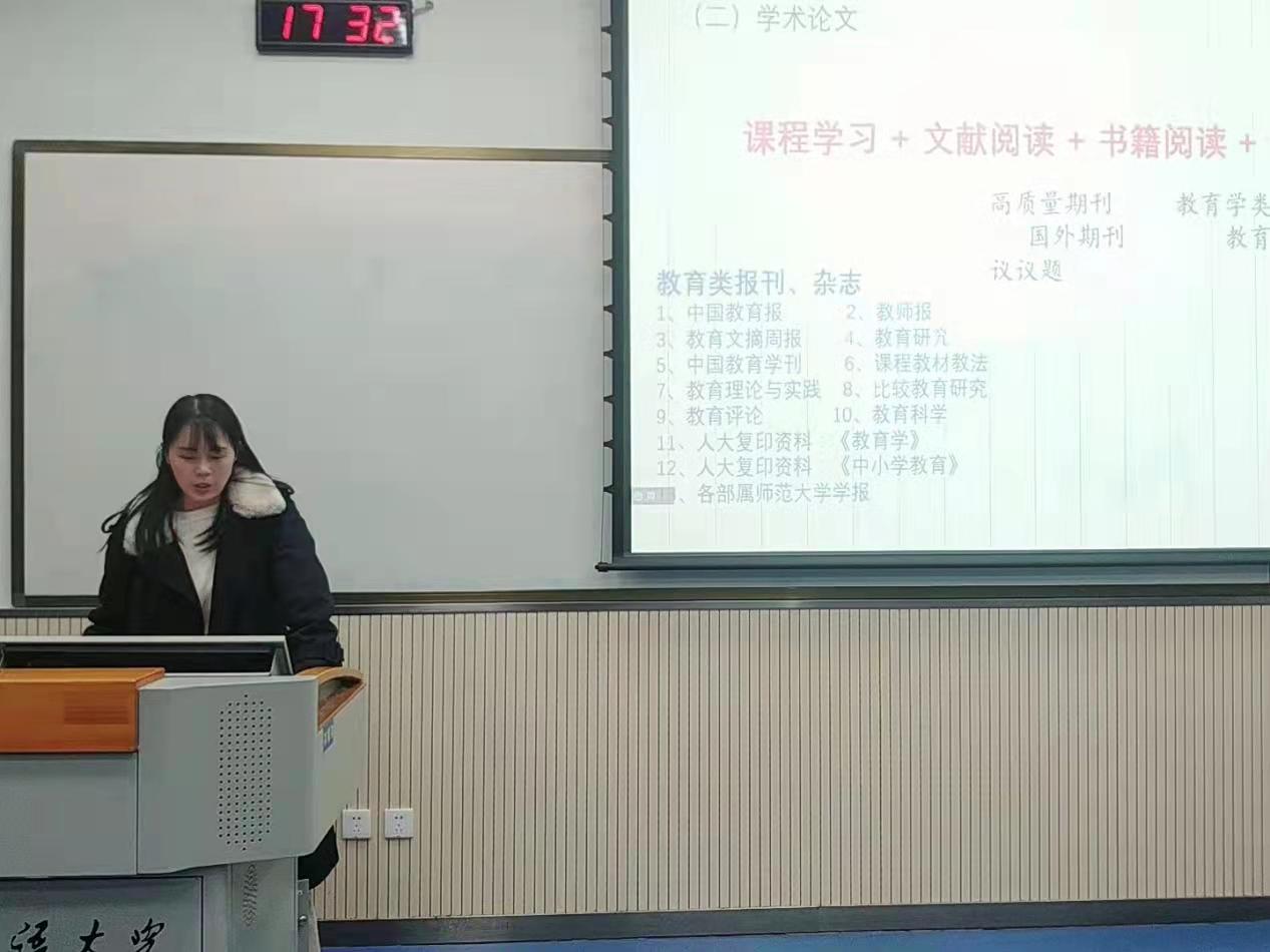 研究生科研热情,促进各年级研究生学术交流,学院特别邀请了2020级比较教育学专业硕士研究生郭子萌于12月3日17:20在JA106举办学术经验分享会。本次分享会以线上+线下形式开展,由研究生辅导员薛璐主持,全体研究生参会。