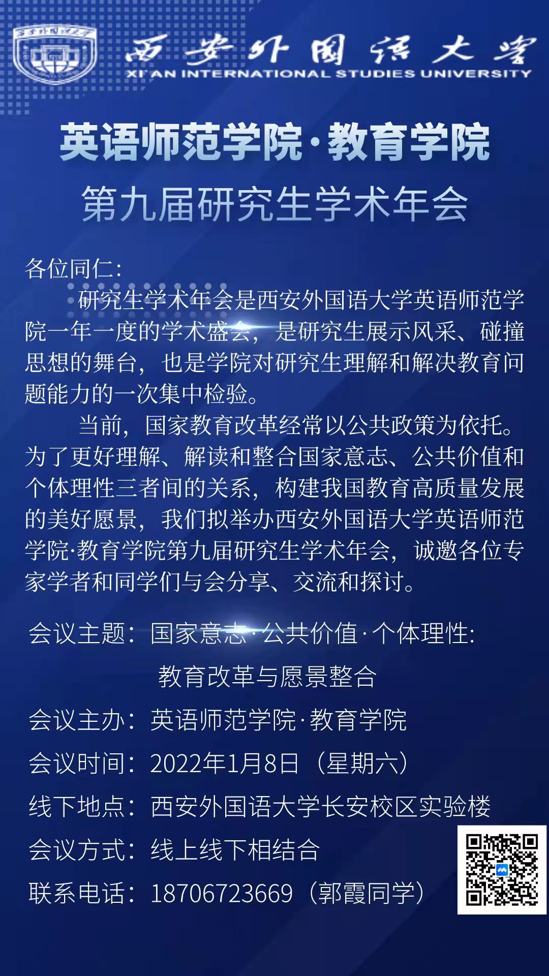 当前,国家教育改革经常以公共政策为依托。为了更好理解、解读和整合国家意志、公共价值和个体理性三者间的关系,构建我国教育高质量发展的美好愿景,我们拟举办西安外国语大学英语师范学院·九州娱乐官网