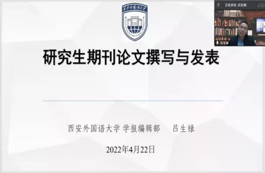 研究生学术素养与写作能力,学院特别邀请了西安外国语大学学报编辑部副主任吕生禄于4月22日19:30线上举办研究生期刊论文写作与发表分享会。本次分享会由副院长冯东主持,学院部分教师和全体研究生参会。