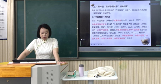 讲座伊始,杨丽娟通过引用习近平总书记在中国共产党第二十次全国代表大会报告中与教育有关的论述作为开题,并围绕“课程思政视域下基于校本微课的初中生用外语讲好‘西安故事’能力培养的行动研究”主题进行了详细介绍。她强调,在课程思政视域下,用外语讲好“西安故事”,不仅是西安城市文旅建设的刚需,还对传播“中国故事”,发出中国声音具有不容忽视的重要意义。