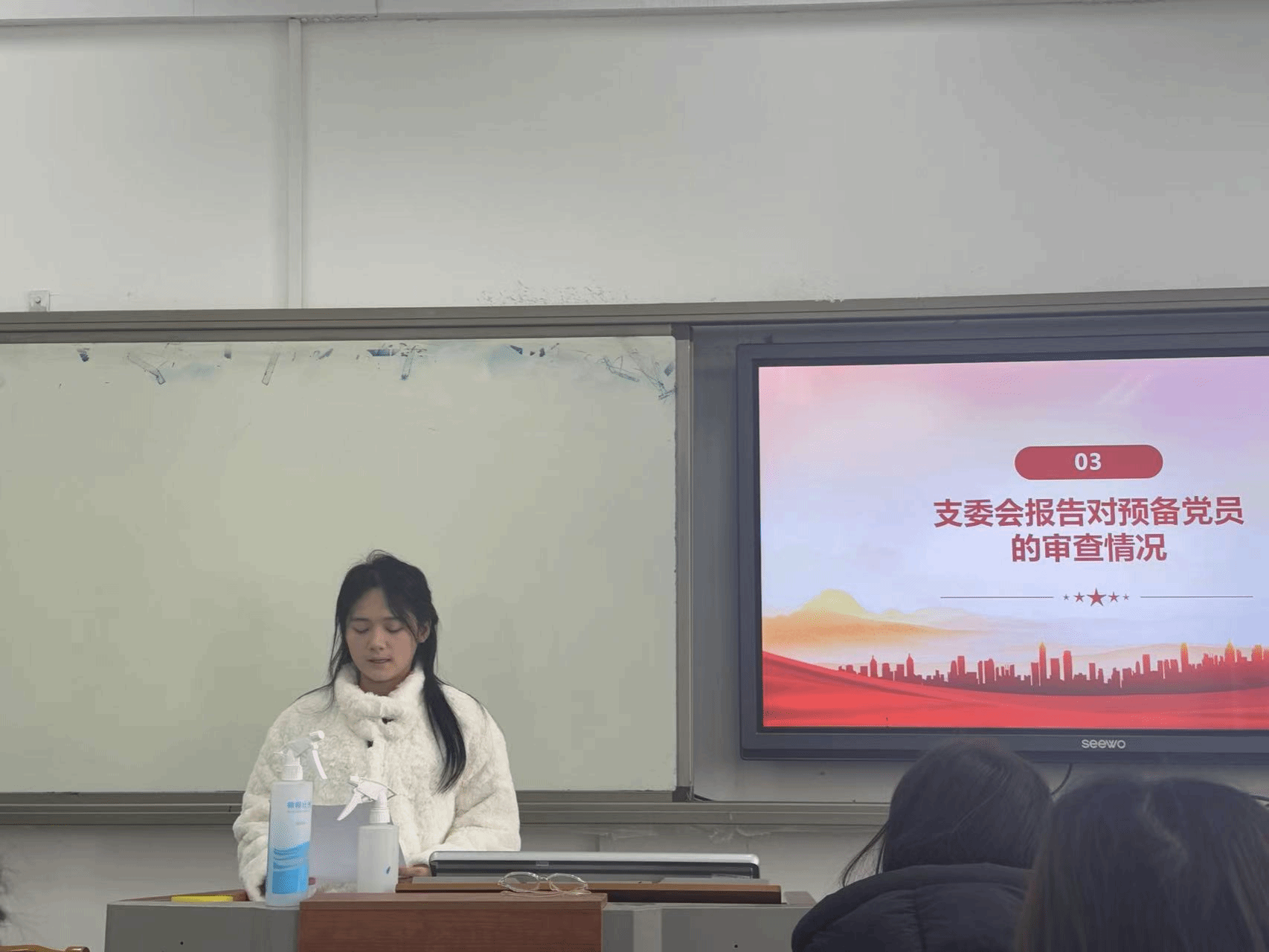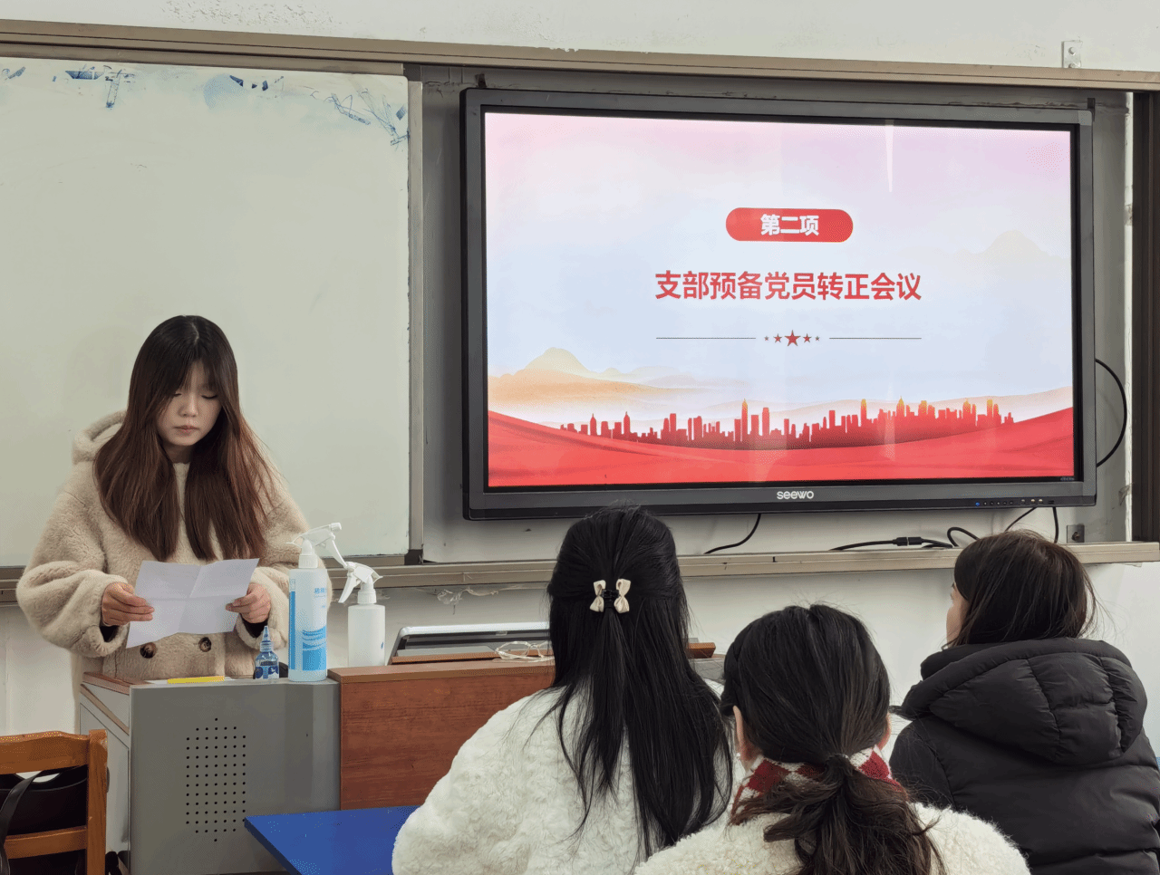 学生第四党支部在JE501召开预备党员转正大会暨“青春心向党,教育筑梦行”主题党日活动。本次会议由支部副书记王子琪主持,支部指导教师薛璐以及学生第四党支部全体学生党员参加了本次会议。