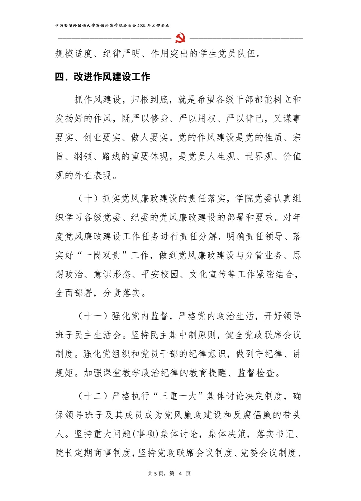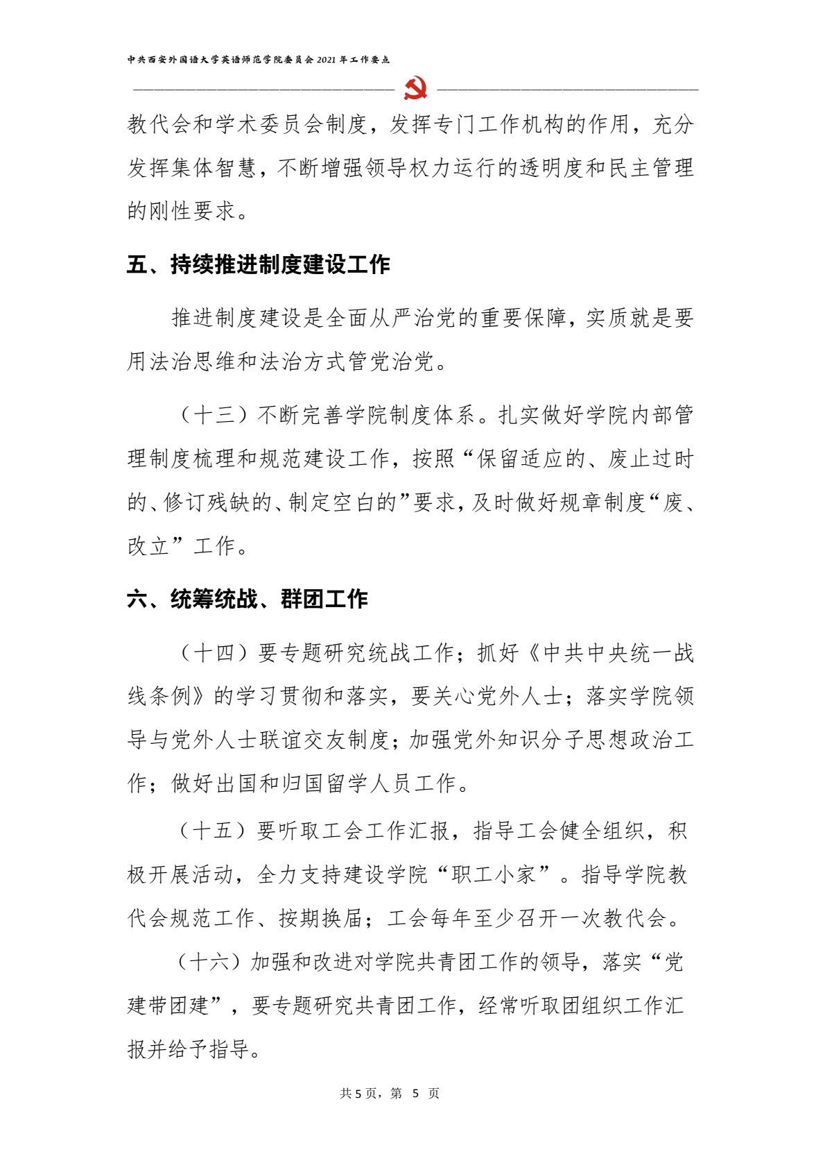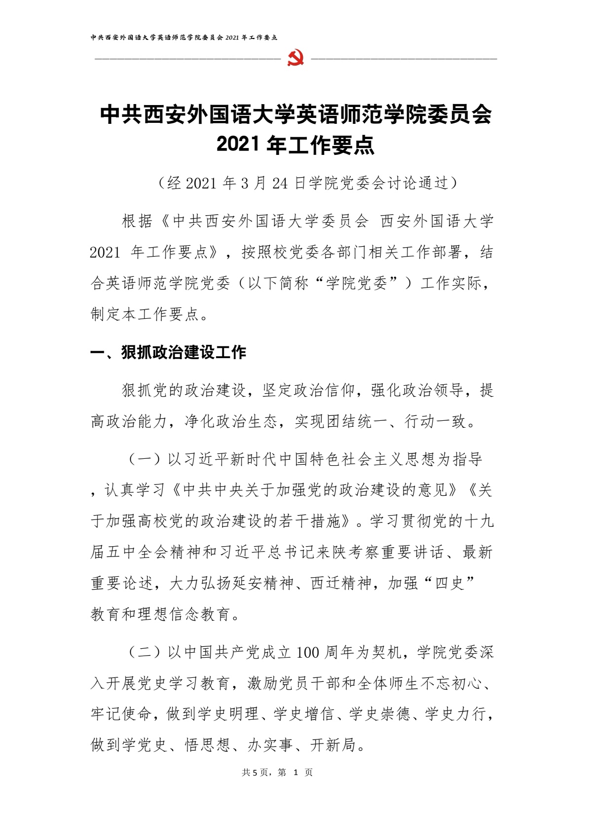 中共西安外国语大学英语师范学院委员会2021年工作要点
