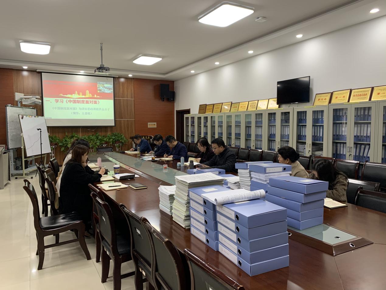 会议包括两项议程。会议第一项,由副院长王嘉铭领学“《中国制度面对面》为讲好思政课提供金点子”,从“在以事说理中讲清中国制度优势”、“在直面问题中讲透中国制度魅力”、“在创新形式中讲活中国制度生命力”三个方面深刻揭示了中国特色社会主义制度“好”之其然、“好”之所以然,为讲好思政课提供了“金点子”和重要参考。会上,全体成员还观看了《中国制度面对面》微视频,视频以拟人化的制度大家族群像,生动活泼地展现中国特色社会主义制度的丰富内涵和显著优势。