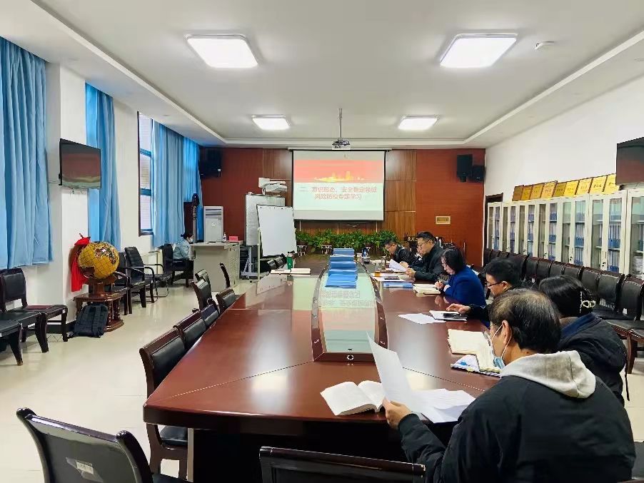 随后姚玮领学意识形态和安全稳定领域风险防控有关内容。他指出,第一,要以习近平新时代中国特色社会主义思想为引领,从讲政治讲大局的高度增强思想自觉、行动自觉,坚决扛起各自分管领域的意识形态工作的全面领导责任,加强压力传导,坚决守住意识形态安全防线,切实担当意识形态的领导责任。第二,校园安全工作直接关系着学生的安危、家庭的幸福、社会的稳定。要提高政治站位,深刻认识维护学校安全、学生安全的重大意义,持续转变作风,投入真情真力,压实责任,常抓不懈,确保校园环境持续安全稳定。