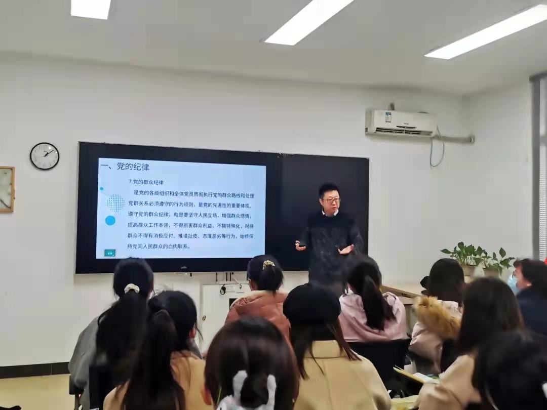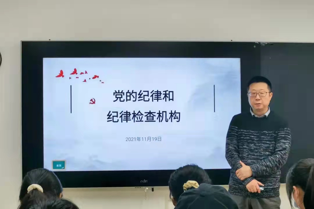 本次党课以党的纪律和纪律检查机构为主题,姚玮书记首先强调了学习党的纪律的必要性和重要性。姚书记讲道,作为一名党员,一定要加深对党的知识的了解,特别是要熟知党章的基本内容,要知晓党章中约束党员的基本规范是什么。党的纪律不仅要求党员哪些不能做,还告诉了党员应该怎么做,以此保证了党组织的先进性和纯洁性。党的十九届六中全会深入研究党加强自身建设、推进自我革命的百年历程,把“坚持自我革命”概括为党百年奋斗的十条历史经验之一,而党的纪律就是党坚持自我革命、自我完善的原则。因此,所有党员必须知晓党纪,遵守党纪,并将其内化于心,外化于行。
