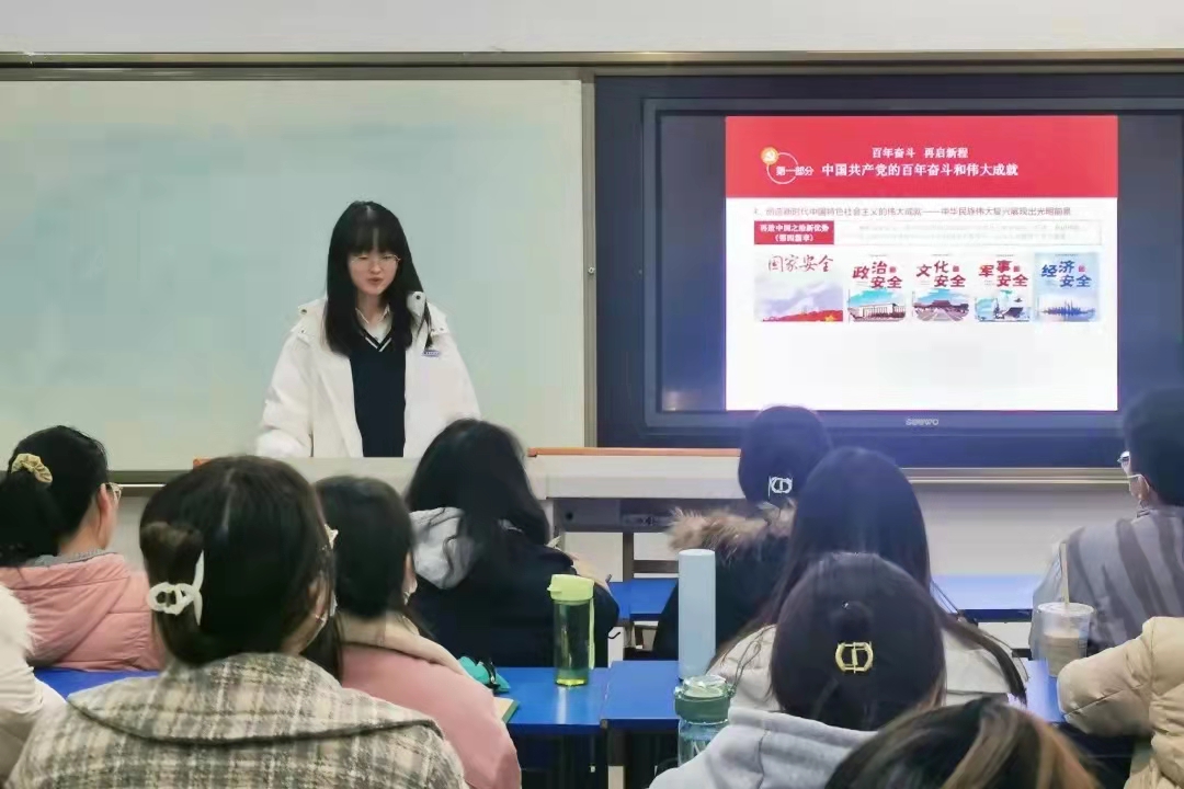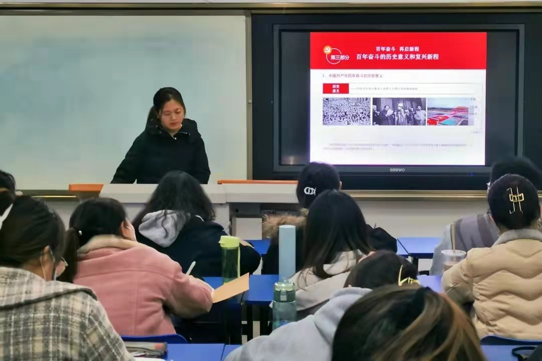 接着,刘利欣从五个方面介绍了百年奋斗的历史意义。风雨百年,光辉百年,这百年奋斗从根本上改变了中国人民的前途命运;开辟了实现中华民族伟大复兴的正确道路;展示了马克思主义的强大生命力;深刻影响了世界历史进程;锻造了走在时代前列的中国共产党。中国共产党立志于中华民族千秋伟业,百年恰是风华正茂。过去一百年,党向人民、向历史交出了一份优异的答卷。百年奋斗创辉煌,而今我们扬帆再起航,要始终牢记中国共产党是什么、要干什么这个根本问题,把握历史发展大势,坚定理想信念,牢记初心使命,以行百里者半九十的清醒不懈推进中华民族伟大复兴。