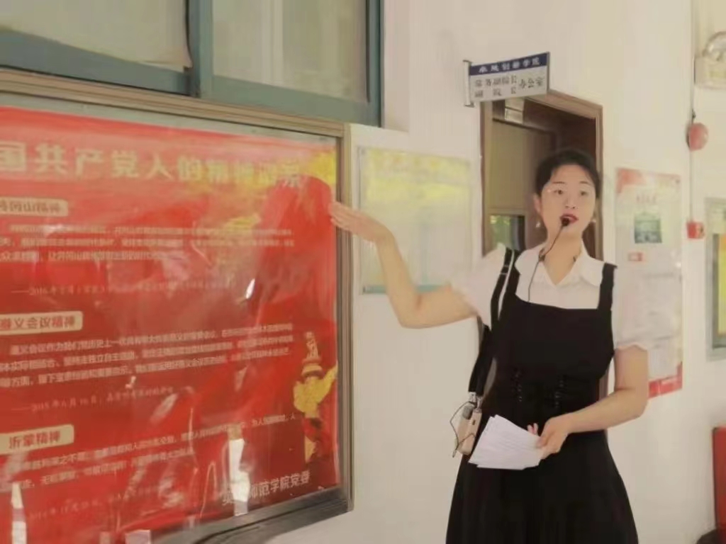 讲解队成员韩昊媛、万斐雪负责,志愿者讲解队指导教师兼首席讲解员刘芳、学院党务秘书王封青及全体入党积极分子参加本次活动。
