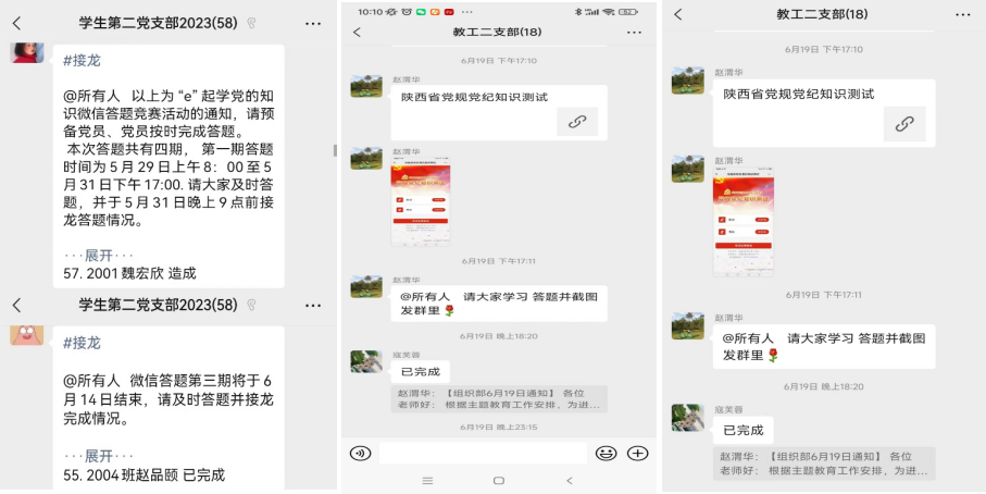 为提升学习成效,学院党委在围绕主题开展学习时,积极创新活动开展方式,确保学习入脑入心。一是依托网络平台,实现“随身实时学”。学院在微信公众号、学院网站等网络平台上多次发布有关纪律教育宣传月的主题内容和答题活动,营造了学习党纪法规的良好氛围,提升了党员同志学习积极主动性。二是党员领导带头,深入基层讲述专题党课。学院党委书记姚玮以“习近平新时代中国特色社会主义思想解读”为主题,以党的二十大精神和党的纪律建设为主要内容,给师生党员上了生动的专题党课,引导师生党员牢记初心使命、不断提高要求、增强党性修养。三是严格落实“三会一课”,扎实开展基层党组织学习活动。学院六个师生党支部积极组织开展“严守纪律规矩 加强作风建设”主题党日活动,扎实开展“学党章 强党性”专题学习,组织党员社会实践队深入社区开展基层志愿服务活动,努力做到学思用贯通,知性行合一。四是以考促学,深化法纪意识。学院党委要求全体党员及时关注“陕西纪检监察”微信公众号,结合公众号上发布的学习内容,学习党纪法规知识,并通过“全省纪律教育学习宣传月党规党纪知识测试”栏目进行在线答题测试,全院共289名师生党员完成在线答题,通过答题测试夯实全体党员特别是党员领导干部努力学习党纪法规知识的自觉性和主动性。
