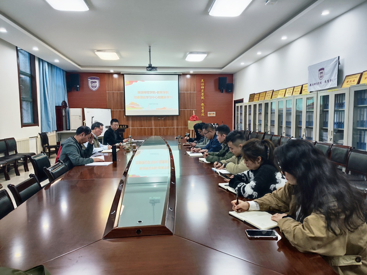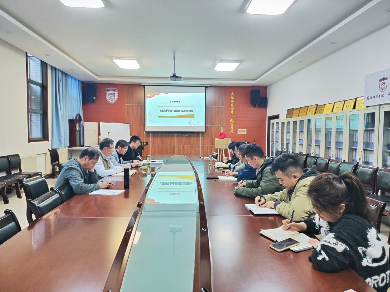 王启龙校长讲到,在学习贯彻习近平新时代中国特色社会主义思想部分,习近平总书记提出的“两个结合”,特别是“第二个结合”的重大论断,让我们能够在更广阔的文化空间中,充分运用中华优秀传统文化的宝贵资源,探索面向未来的理论和制度创新。作为高校教育管理工作者,一定要有政治敏锐性,要立足本职工作,系统学习深入思考,将教学管理科研与文化建设紧密结合,结合实际落实习近平文化思想的学习贯彻。
