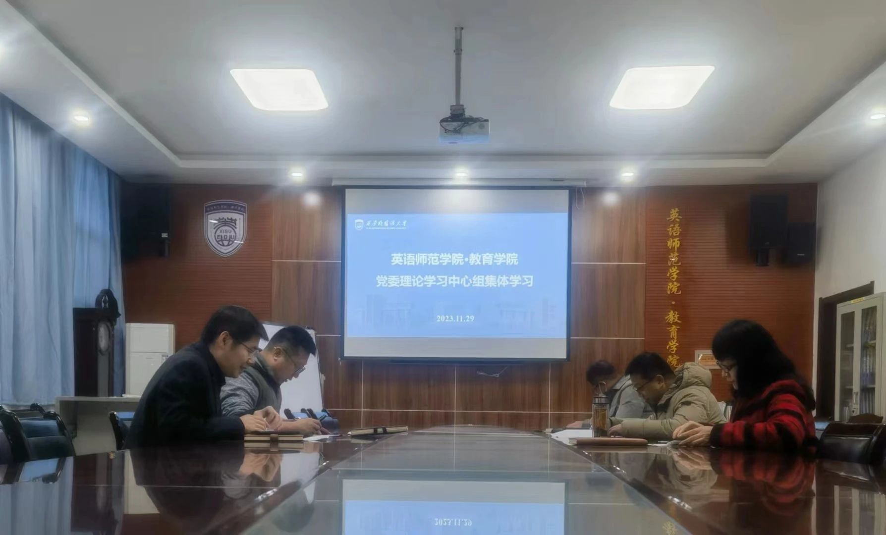 2023年11月29日,学院党委理论学习中心组在H107会议室举行本学期第8次集体学习,中心组成员参加学习,集体学习由党委书记姚玮主持。