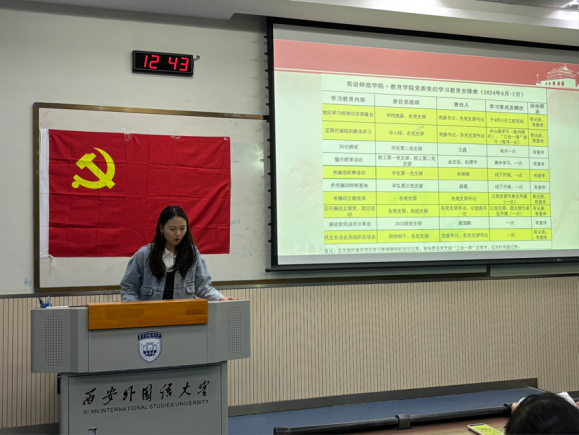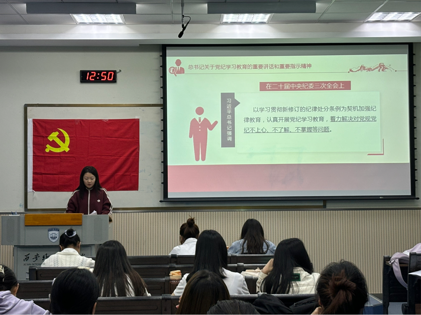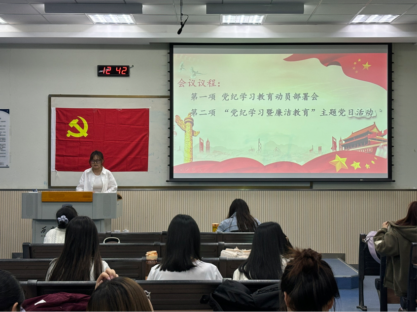 学生第一党支部于2024年4月24日12:40在教学楼A106召开“党纪学习暨廉洁教育”主题党日活动。会议由白诗勤同志主持,支部副书记李婵婵及全体党员参加会议。