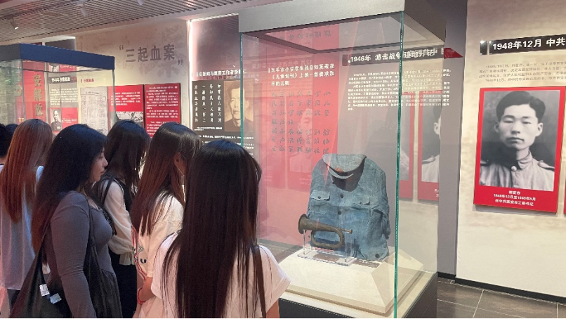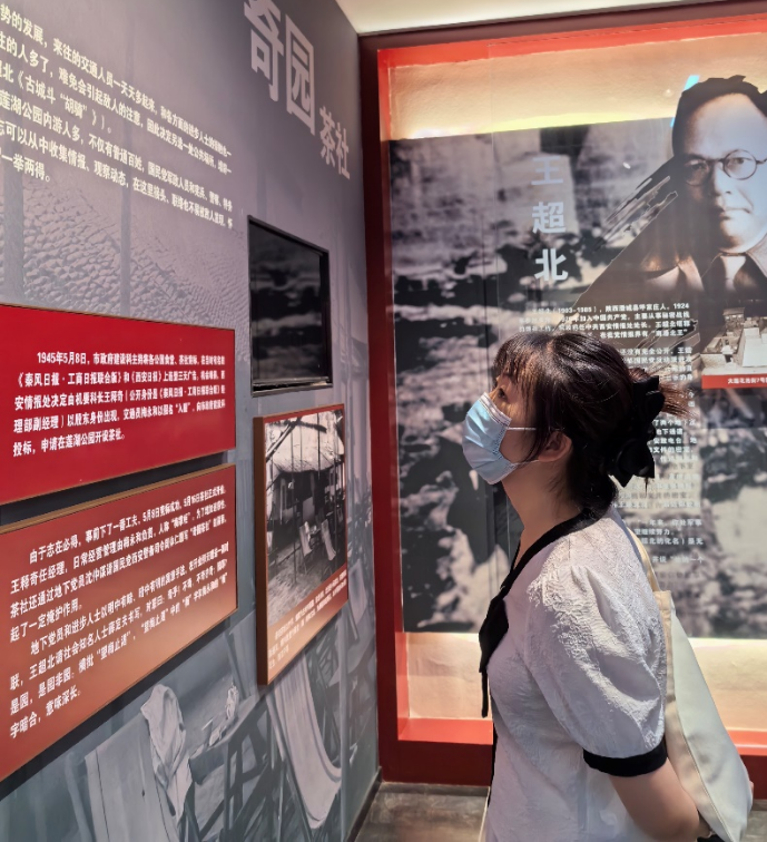 全体党员依次参观了红色记忆主题展览馆和红莲丹心主题区。红色记忆主题展览馆主要讲述了从辛亥革命时期到解放战争时期,西安以及莲湖区的革命历史,还原再现奇园茶社作为党的秘密联络站的经营场景,记录了西安第一个青年团的设立以及爱国青年张寒晖创作抗日歌曲《松花江上》的感人故事。通过参观馆内展示的历史文物,了解历史照片背后的故事,学生党员进一步认识了西安市及莲湖区的革命历史,深切体会了革命先烈不怕牺牲、艰苦奋斗的精神。