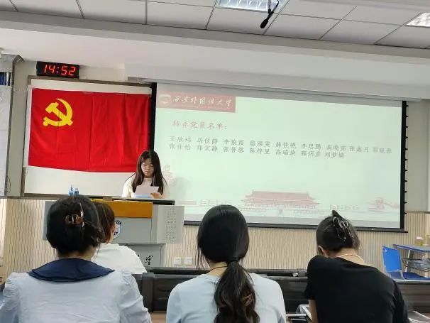 学生第二党支部于2024年5月27日14:30在教学楼E503召开预备党员转正大会暨“学党规党纪 强党风党性”主题党日活动。会议由党支部书记王鑫主持,全体党员参加会议。