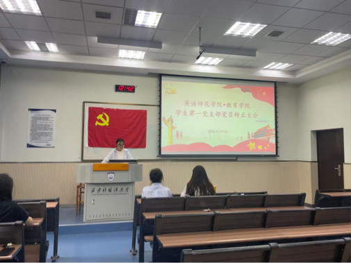 党员队伍建设,作为党的建设的重要基石,承载着直接联系并服务群众的神圣职责。党员们不仅是党的主张的积极宣传者,党的决定的坚定贯彻者,更是基层治理的有力领导者、群众的紧密团结者以及改革发展的积极推动者。通过不断加强党员队伍的建设,我们能够稳固党与群众之间的紧密联系,进一步夯实党的执政根基,确保党的领导和社会主义事业的蓬勃发展。为进一步发展壮大党员队伍,加强党组织建设,不断增强党组织凝聚力和创造力。西安外国语大学英语师范学院学生第一党支部于2024年6月4日12:40在教学楼A区106教室召开预备党员转正大会,会议由白诗勤主持,支部副书记李婵婵及全体党员参加会议。