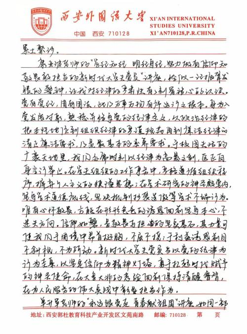 此次培训让我深刻体悟到,青年学生在新时代的使命与担当是复多元且厚重的,既需要秉持爱国奋斗的崇高精神追求,又要严与律红线底线;既需要坚定不移地永远跟党走,又要深入细致地学习党章党规,便其内化于心,外化于行。在今后的学习、生活与工作让中,我将以更为严格的标准自我鞭策,笃学专业知识,全方位提升综合素质,踊跃投身社会实践与志愿服务活动,在磨砺中锻造坚毅不拔的意志品质。时刻铭记党的谆谆教诲,以党员标准严格律已,矢志不渝地朝着成为一名光荣的中国共产党员目标西进,在党旗飘洋引领下践行青年便命担当,为中华民族伟大复兴宏伟燕图的绘就倾尽全力。我坚信,只要广大青年学生凝心聚力,在中国共产党的坚强领航下,它能铸就更加了绚烂辉煌的未来,书写无愧雨时代的壮丽华章。