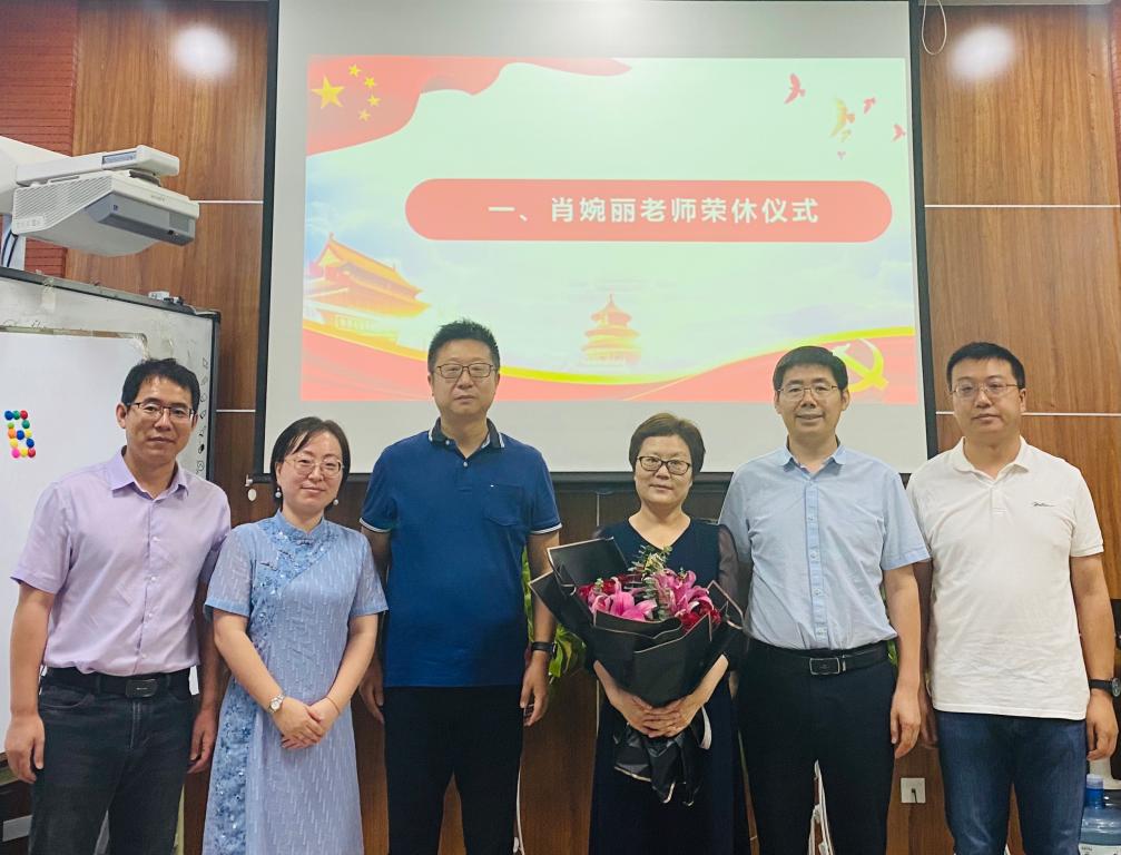在H107会议室召开学期末全体教职工工作会议,英语师范学院全体教职工参加了会议,会议由党委书记姚玮主持。会议第一项,学院为肖婉丽老师举行荣休仪式。荣休仪式上,孙二军院长对肖婉丽老师的光荣退休表示诚挚的祝贺,并感谢她为学院发展和人才培养做出的贡献,祝福她荣休后的生活能更加多姿多彩。肖婉丽老师也在发言中回忆自己美好的工作经历,对领导及同事们的关爱表达了感谢,为学院美好的明天送上真诚的祝福。