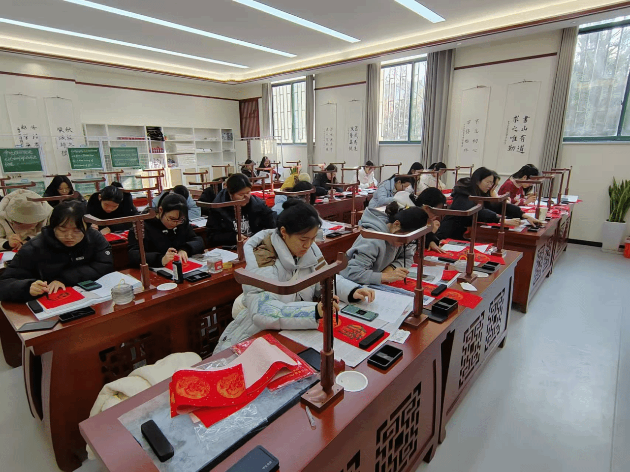 多名擅长软笔书法的同学,他们以笔为剑,以墨为锋,在一方红纸之上书写着对新春的美好憧憬与祝愿。让我们一起来看看吧!