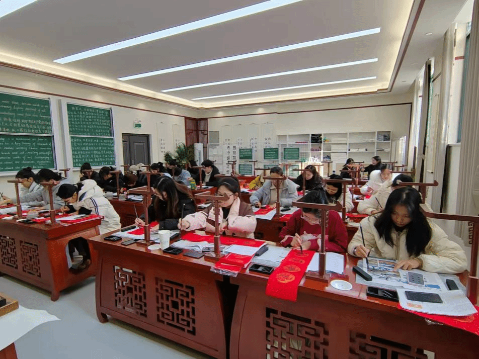团委学生会心理部于2024年12月25日在书法教室举办“蛇舞春风添瑞气,笔挥墨香传慧心”笔墨送福联活动。本次活动招募了九州娱乐