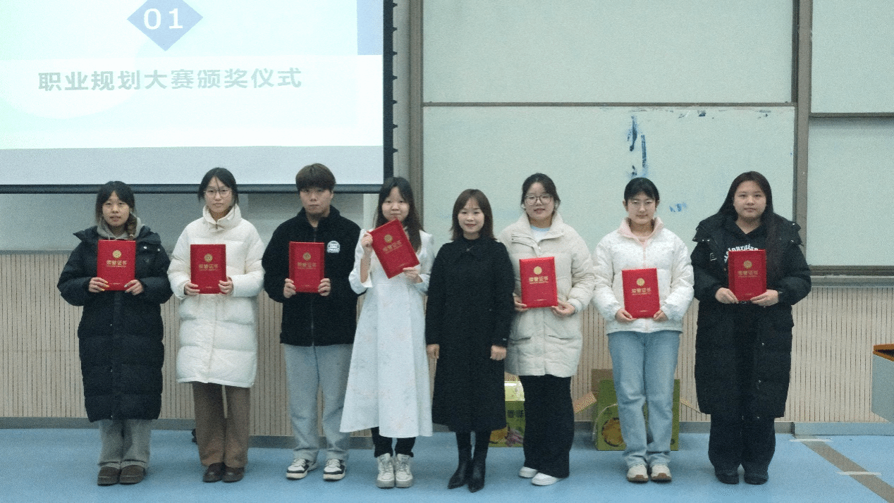 随后,李瑞静老师为2022级在第二届全国大学生职业规划大赛校院两级比赛中取得优异成绩的同学颁发证书,肯定他们在比赛前认真准备、在比赛中全力以赴、在比赛后及时复盘,将专业学习与就业实践有效结合,全面提升自身就业能力,为全年级同学起到良好的带头作用。李老师表示,大三一年的时间对同学们来说至关重要,要积极投身于职业规划和就业实践的探索中,尽早谋划未来发展方向,为即将开启的职业生涯奠定坚实基础。