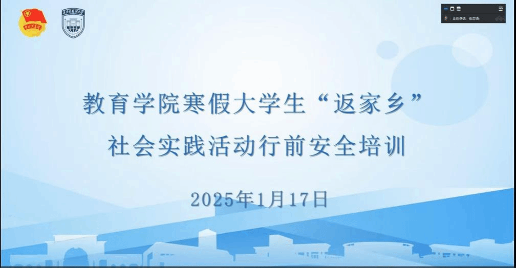 寒假返家乡活动的前期报名详情,以及召开本次会议的目的。随后,她围绕人身安全、财产安全、交通安全、日常报备及突发状况应对等多个关键领域,对全体参与寒假返家乡社会实践活动的队员开展了系统培训。