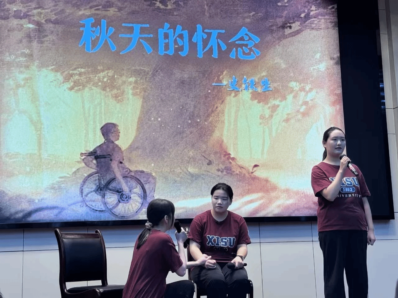 “诵读中国”经典诵读大赛现场同样精彩纷呈。黄承容、木涵、古丽达娜·努尔兰三位同学以作品《秋天的怀念》,用饱含深情的诵读,将史铁生笔下对母亲的思念与眷恋娓娓道来,声音真挚动人,情感层层递进,让听众深切感受到文字背后的力量;米尔扎提·买买提、扎克亚·吐尔洪太、塞地努尔·巴哈提拜三位同学带来的《舞会结束以后》,以富有感染力的语调,将作品的意境生动呈现,带领听众领略经典的独特少数民族文化魅力。最终,两组同学均凭借出色表现荣获优秀奖