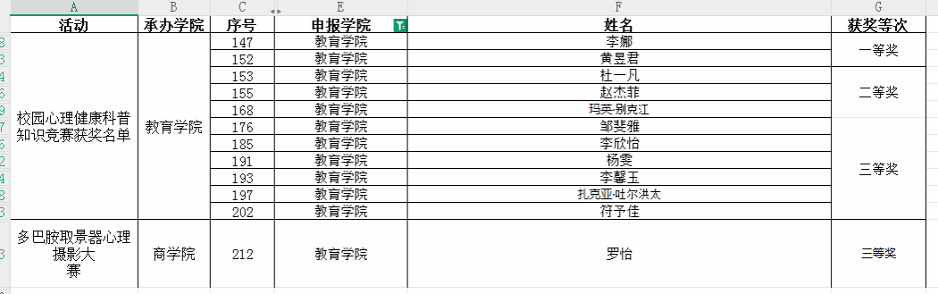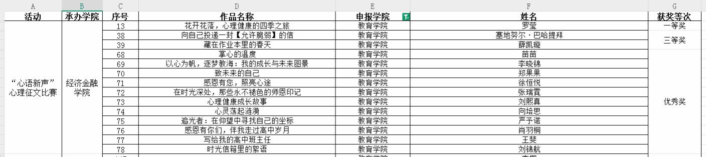 学子还积极参与了“心语新声”心理征文比赛、多巴胺取景器心理摄影大赛等活动,并获得如下奖项: