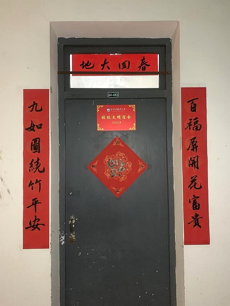 一幅幅满载期许又不失俏皮的春联给宿舍楼增添了几分喜气,也彰显了浓浓的宿舍文化。