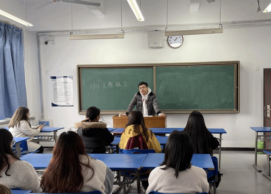 辅导员绪道恒分别在各个班级对即将实习的同学们近来表现给予肯定与表扬,并从毕业生自我认知、确定就业方向、多渠道获取就业机会和实习准备等方面向同学们进行了详细的介绍。班会期间,绪老师重点强调了实习期间的安全问题,叮嘱同学们在实习单位要坚持和落实国家疫情防控相关规定,强化安全意识,提高防范能力,时时刻刻都要注意自身安全。绪老师希望同学们能适应社会和环境变化,提高适应社会能力,提升人际交往能力,能够以昂扬激情踏上毕业进行时。