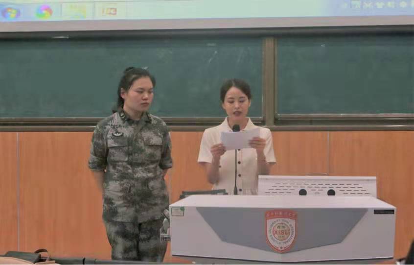 邀请高级翻译学院退伍女兵王梦薇分享军旅故事并对征兵入伍程序和政策进行详细解读。学院2018级、2019级、2020级部分学生参加了本次讲座,讲座由2018级辅导员赵怡宁老师主持。