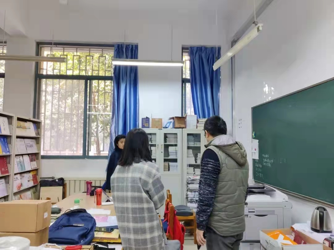 学院副书记刘一静和各年级辅导员通过走访宿舍、谈心谈话等形式扎实开展对学生的心理问题排查;学院党委书记姚玮带队检查各教研室、会议室、库房;学院副院长冯东、王嘉铭带队检查学院固定教室和教授办公室;各办公室积极开展自查。