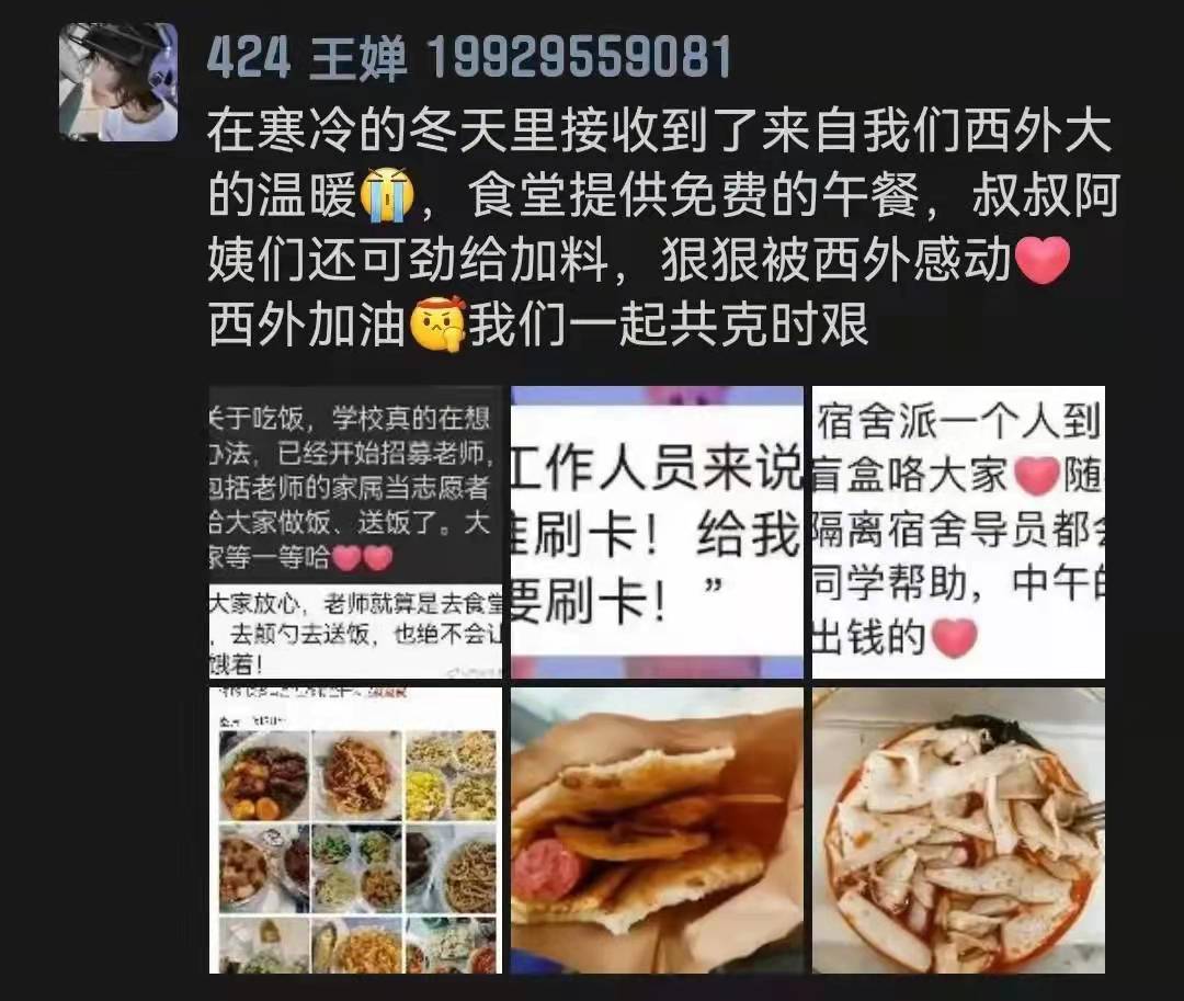 今天的西外格外寒冷,也格外的安静。疫情袭来,学校迅速决策,通知所有同学在宿舍制动。然而,XISUer们的心里都是暖暖的,我们看到了希望,我们收获了感动!