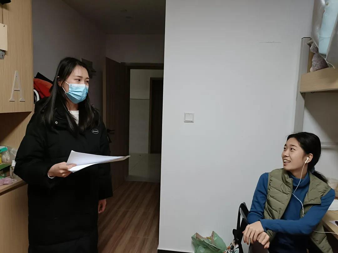 研究生会学生干部郭子萌和刘如帆在辅导员薛璐老师的指导下深入走访宿舍,与同学们进行交流,贴心询问同学们近期的学习和生活情况。