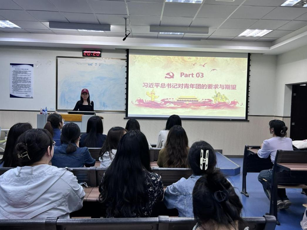 会议第一项,杨海韵带领同学们学习了中国共产主义青年团相关历史回顾。通过一系列生动翔实的史料、图片和视频资料,加深了对共青团历史和使命的认识。通过深入剖析共青团的历史与使命,强调了广大团员青年应坚定理想信念,发扬无私奉献的精神,展现出自信自强、刚健有为的青春风貌。号召大家自觉担当起时代赋予的重任,深入基层一线,将青春的热情和智慧播撒在民族复兴的伟大征程上,将个人的光荣与梦想镌刻在历史的丰碑之中。