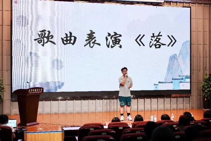 预科一班谢恩行为同学们带来了歌曲表演《落》,以优美的歌声带领同学们徜徉于诗词山水之间,领略其中美好。