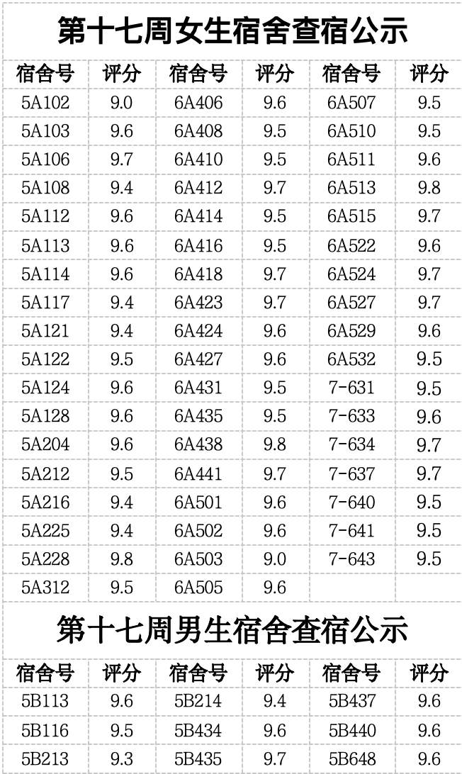 按例进行第十七周的宿舍卫生检查活动。